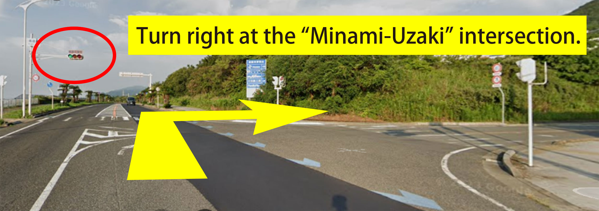 ② Turn right at the Tanoshirō intersection and continue straight.