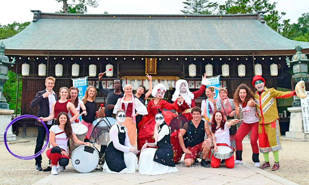 Each year, we gather talented performers in a broad range of genres from around the world to showcase their cultures and skills to audiences island-wide by performing in our own originally written shows, which focus on themes related to Awaji Island. Additionally, we cooperate with local institutions to host other events, such as performing at local schools.
