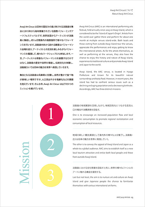 This chronicle book is mainly about activities of Awaji Art Circus 2017, but you can also find some information and photos from 2015 and 2016.