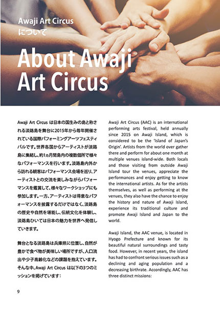 Awaji Art Circus BOOK is written in both Japanese and English. To receive a link for downloading the PDF version, please fill in the registration form below. (*Awaji Art Circus updates will be sent to the registered E-mail at a later date.)