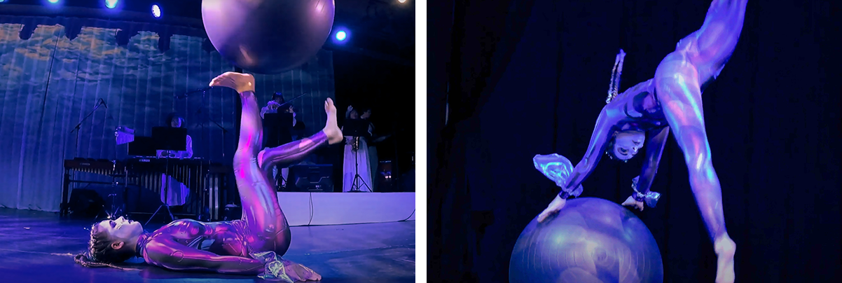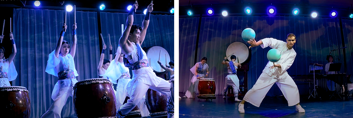 The force of the whirlpools is expressed through a dynamic performance featuring freestyle basketball and taiko drums.