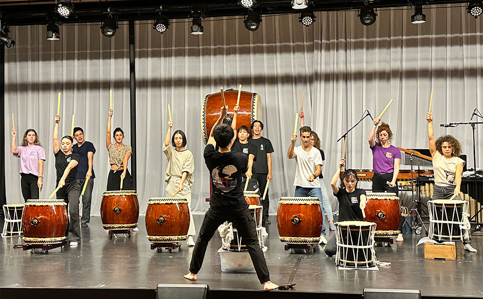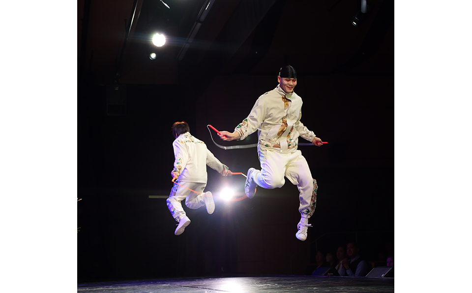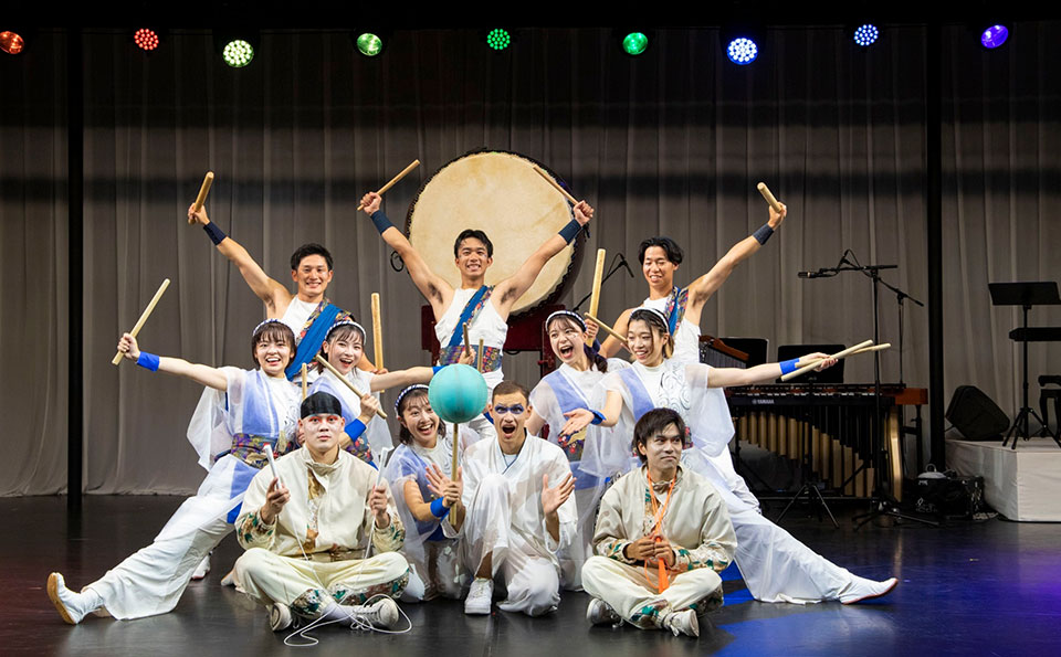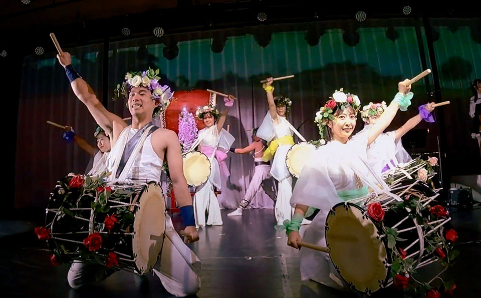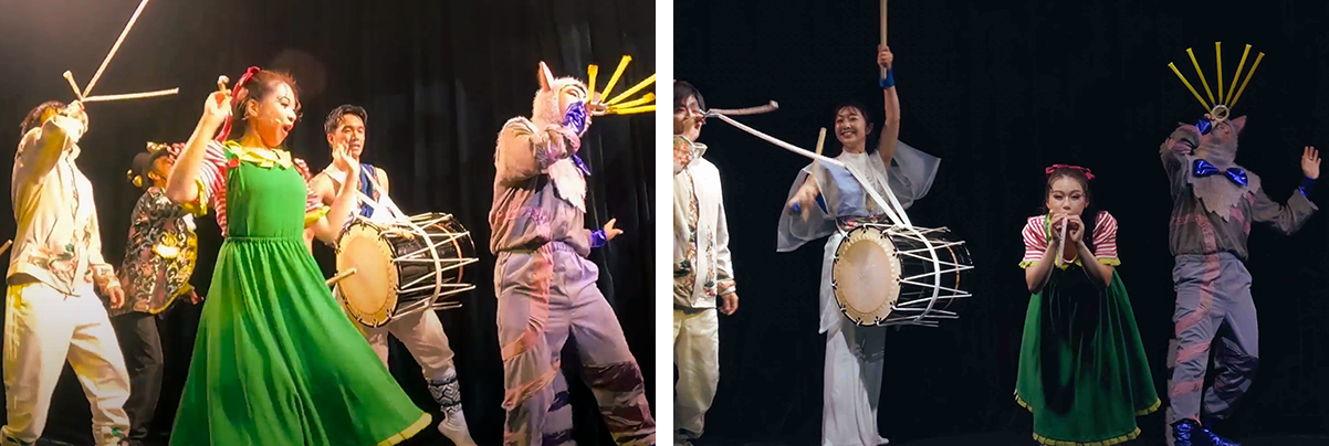 The miracle that Alice witnesses at Awaji Hanasajiki is conveyed through an energetic and powerful performance of jump rope and taiko drums.