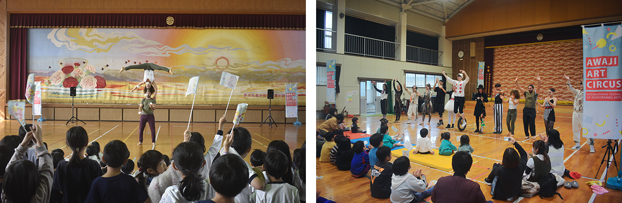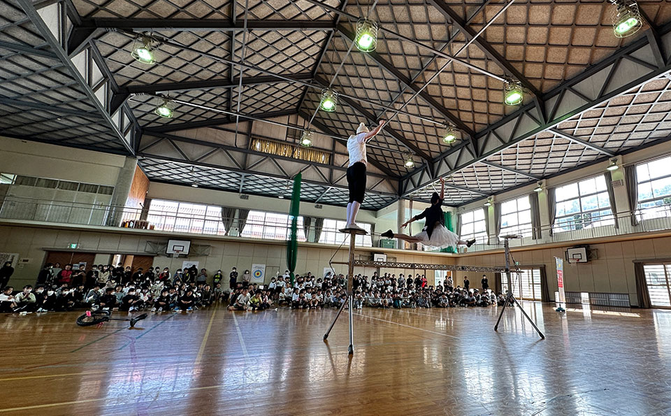 Since 2016, Awaji Art Circus has been conducting school outreach performances. Through this program, the aim is to deepen the understanding of the next generation about cultural arts and broaden the perspectives of children. Simultaneously, the program seeks to foster a broader understanding of the role and way of life as "performers." By appreciating various performances, the goal is to deepen the understanding of performing arts.