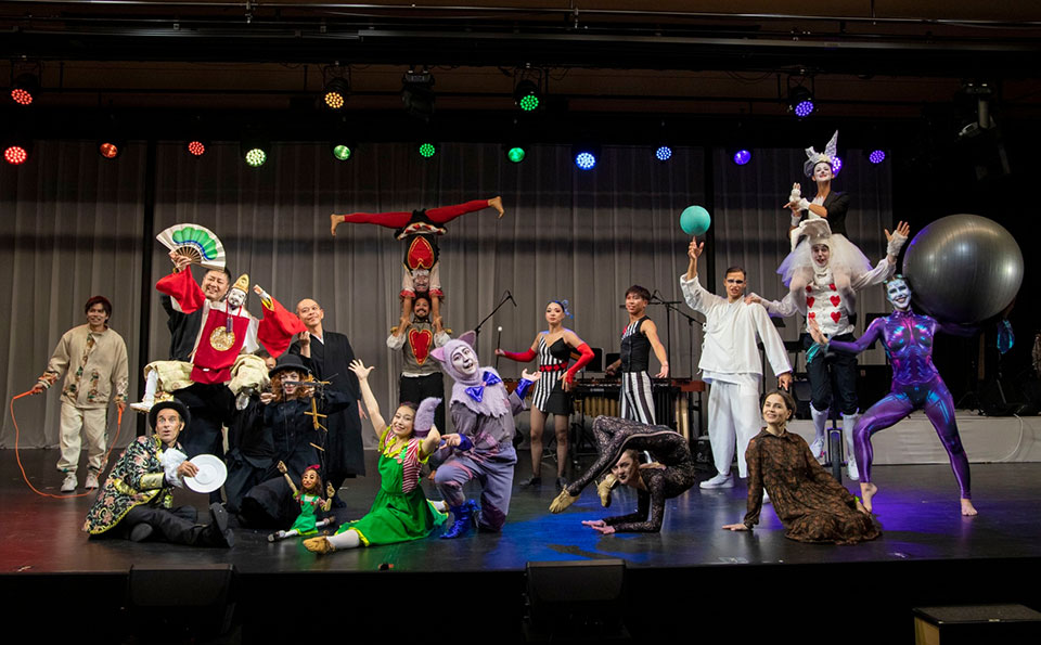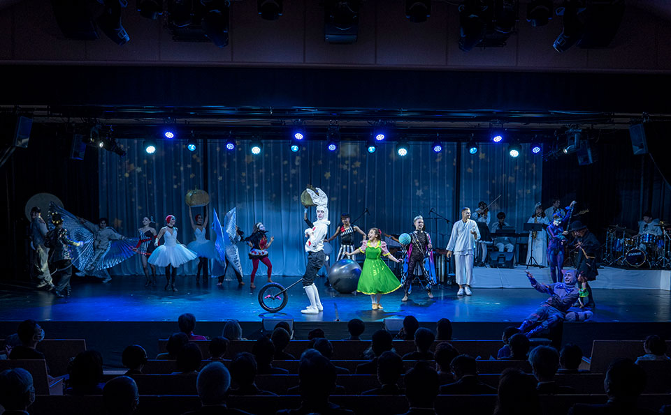 The story of "Alice in Awajiland" was brought to the stage by vibrant circus performances by world-class artists from around the globe, featuring breathtaking acrobatics, dance, contortion, ballet, puppetry (including special appearances by the world-famous Awaji Puppet Theater), tightwire, comedy, and more - all accompanied by live music.