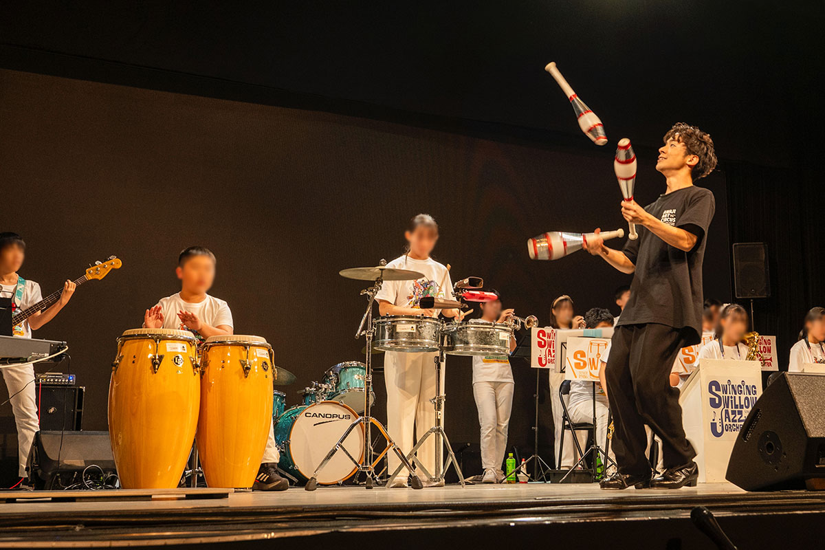In this collaboration, members of Awaji Art Circus performed a special performance alongside music from the musicians participating in Kansai Music Conference. The stage, where music and performance merged, not only brought new emotions to the audience but also served as a valuable opportunity to widely introduce the activities of Awaji Art Circus.